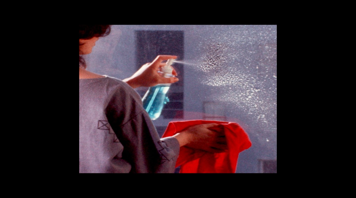 Part of a series of films shot from my apartment windows. The character narrates possible scenarios of neighbors' lives, talks about the mid-Atlantic accent, and the threat of war as the windows are washed and people move in and out of their apartments.