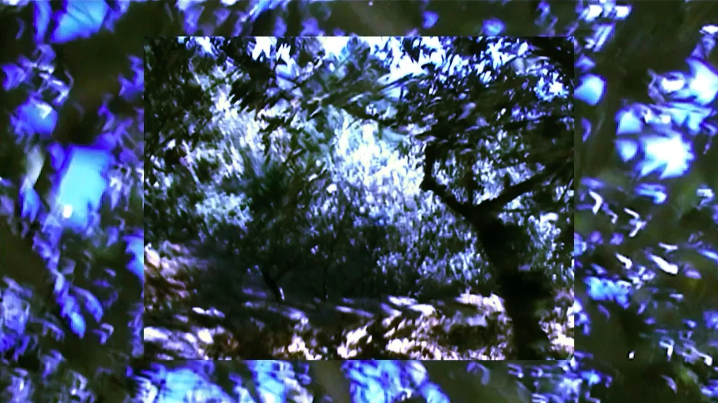 Made passing a camera back and forth on a walk under Linden Trees in Marin, California. Presented in 2002 as a performance at a San Francisco Cinematheque retrospective, Etel read, while I edited our video live. In 2018 we reworked the video as a single screen piece, embedding Etel’s poem and our current thoughts as text over the image.