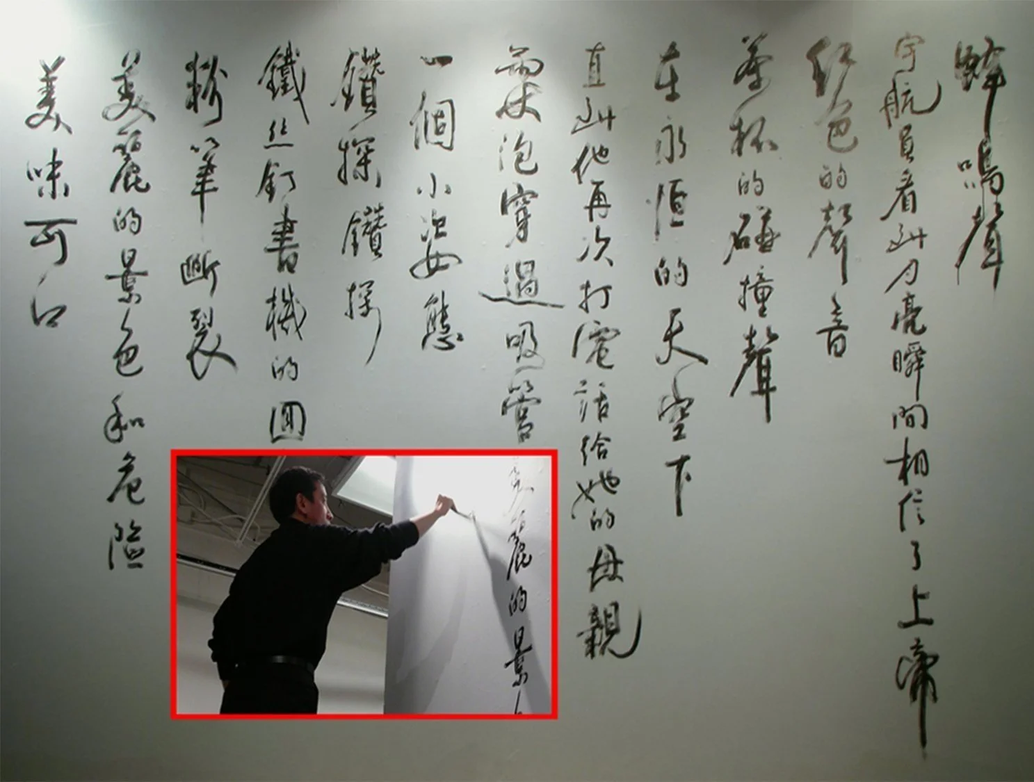 When I returned I studied with master calligrapher Zhang Huo. I was interested in the meditative aspects of calligraphy as well as learning to write sounds from these listening events in Chinese. Ultimately it was Mr. Zang, who wrote sounds, extracted from each story, on a gallery wall at the opening.